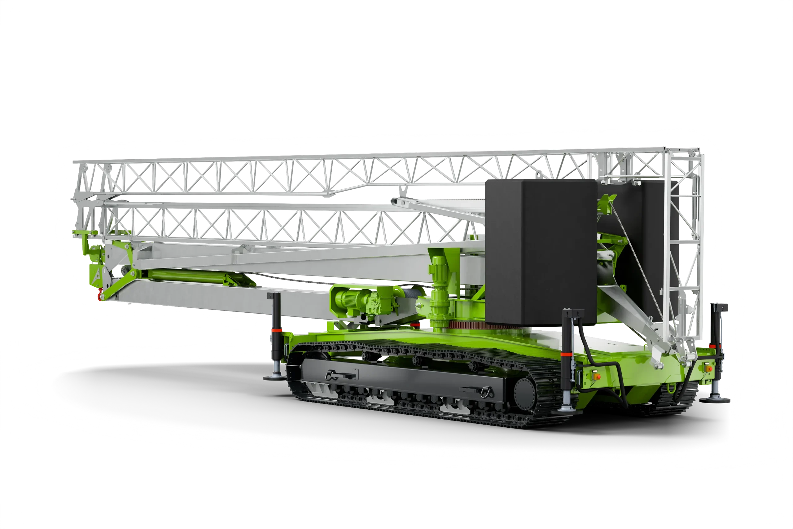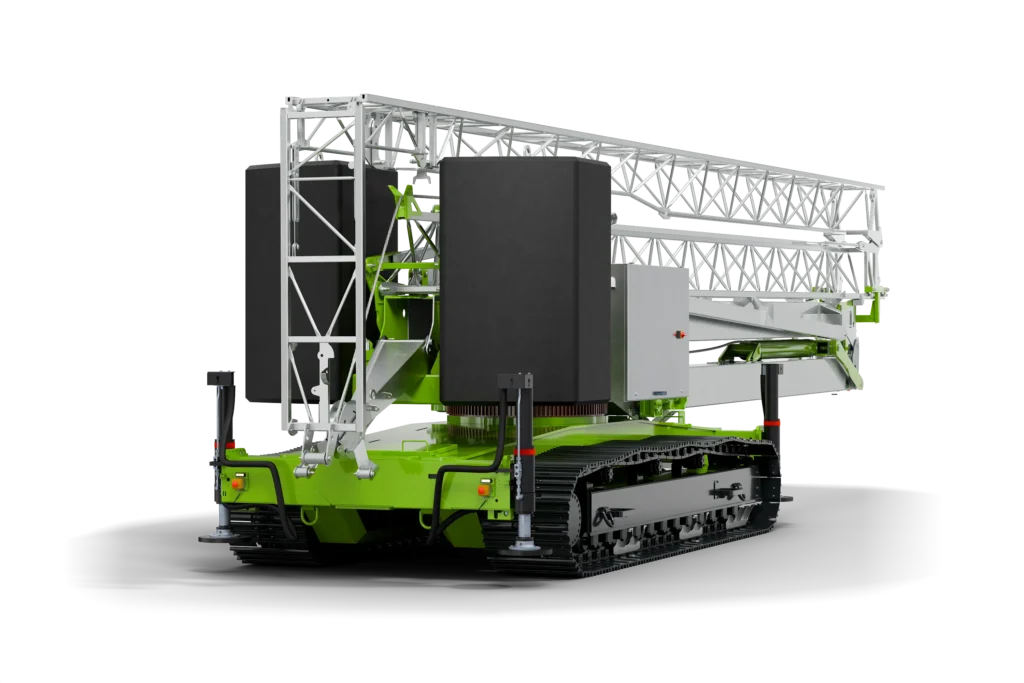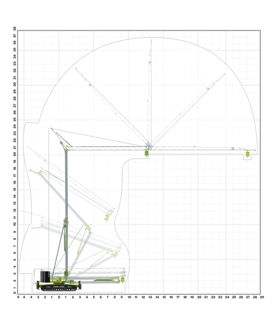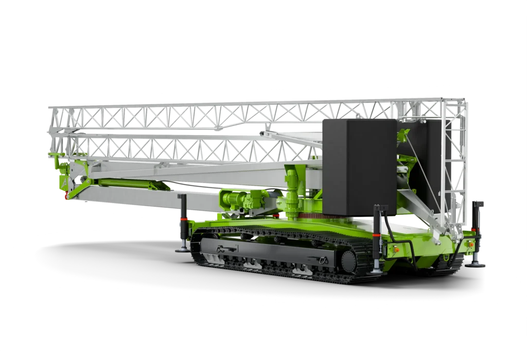 The Kraxcle C27 is a powerful crawler crane with a boom length of 27 metres and a maximum lifting capacity of 2,500 kg. Thanks to its crawler drive and impressive lifting capacity, this crane is suitable for a wide range of heavy-duty tasks. The C27 has a hook height of 19.5 metres and, like the other models, is equipped with radio control.